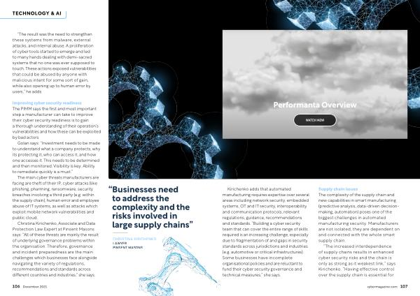 Improving cyber security readiness The PIMM says the first and most important step a manufacturer can take to improve their cyber security readiness is to gain a thorough understanding of their operation ’ s vulnerabilities and how these can be exploited by bad actors .