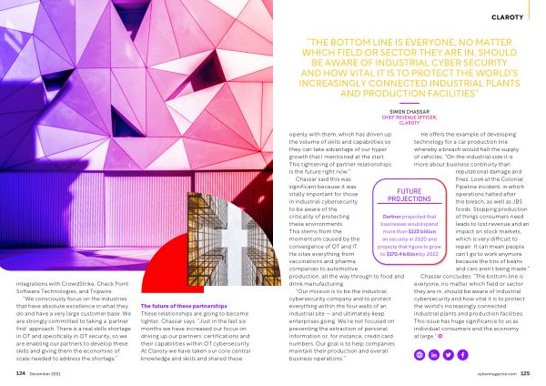 The future of these partnerships These relationships are going to become tighter , Chassar says . “ Just in the last six months we have increased our focus on driving up our partners ’ certifications and their capabilities within OT cybersecurity . At Claroty we have taken our core central knowledge and skills and shared these