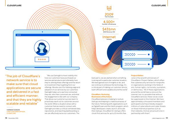 Project Galileo June is the seventh anniversary of Cloudflare ’ s Project Galileo , which offers free cybersecurity services for nonprofits or organisations working in the fields of arts , human rights , civil society , journalism , or democracy . “ All of these organisations around the world have a voice on the Internet , but it is possible that without Cloudflare services , these voices could be suppressed on the Internet . We have approximately a thousand members and participants and have literally stopped millions of cyber attacks and cyber threats on these Internet properties such as their websites . And we are proud to be in partnership with them ”. cybermagazine . com 99