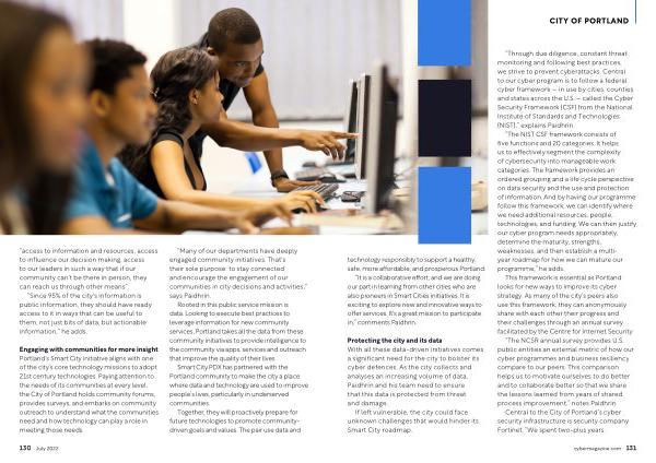 This framework is essential as Portland looks for new ways to improve its cyber strategy . As many of the city ’ s peers also use this framework , they can anonymously share with each other their progress and their challenges through an annual survey facilitated by the Centre for Internet Security . “ The NCSR annual survey provides U . S . public entities an external metric of how our cyber programmes and business resiliency compare to our peers . This comparison helps us to motivate ourselves to do better and to collaborate better so that we share the lessons learned from years of shared process improvement ,” notes Paidhrin .