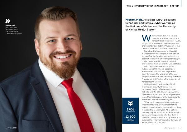 Michael Meis , Associate CISO , discusses talent , risk and tactical cyber warfare as the first line of defence at the University of Kansas Health System