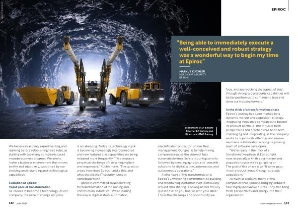 MARKUS KÜCHLER HEAD OF IT SECURITY EPIROC face , and approaching the aspect of trust through strong cybersecurity capabilities will better position us to continue to lead and drive our industry forward .”