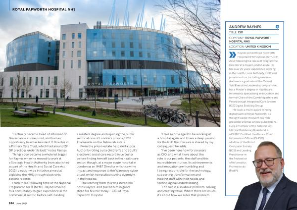 Hospital NHS Foundation Trust in 2017 following his role as IT Programme Director at a major London acute . He has over 20 years ’ experience working in the health , Local Authority , HMP and private sectors , including overseas . Andrew is a graduate of the Oxford Said Executive Leadership programme , has a Master ’ s degree in Healthcare Informatics specialising in education and former Chair of the Cambridgeshire and Peterborough Integrated Care System ( ICS ) Digital Enabling Group .