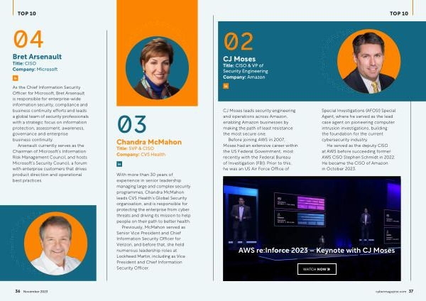 With more than 30 years of experience in senior leadership managing large and complex security programmes , Chandra McMahon leads CVS Health ’ s Global Security organisation , and is responsible for protecting the enterprise from cyber threats and driving its mission to help people on their path to better health .
