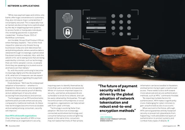 JON HORDDAL GROUP CHIEF PRODUCT OFFICER , EMERCHANTPAY information can be accessible to fraudsters and bad actors trying to gain unauthorised access . There needs to be a shift toward more advanced and secure authentication methods , such as MFA ,” comments Horddal .