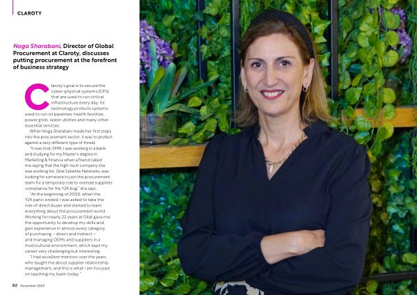 Noga Sharabani , Director of Global Procurement at Claroty , discusses putting procurement at the forefront of business strategy